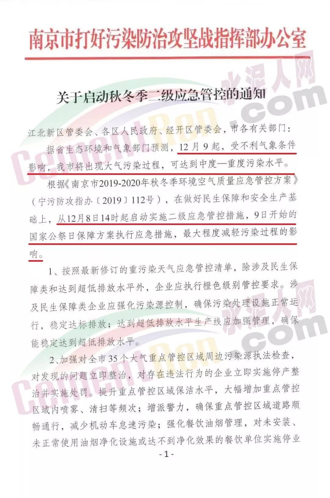 日前,江蘇省南京市打好污染防治攻堅(jiān)戰(zhàn)指揮部辦公室發(fā)布了《關(guān)于啟動(dòng)冬季二級應(yīng)急管控的通知》稱,根據(jù)《南京市2019-2020年秋冬季環(huán)境空氣質(zhì)量應(yīng)急管控方案》(寧污防攻指辦[2019]112號),在做好民生保障和安全生產(chǎn)基礎(chǔ)上,從12月8日14時(shí)起啟動(dòng)實(shí)施二級應(yīng)急管控措施,9日開始的國家公祭日保障方案執(zhí)行應(yīng)急措施,最大程度減輕污染過程的影響。