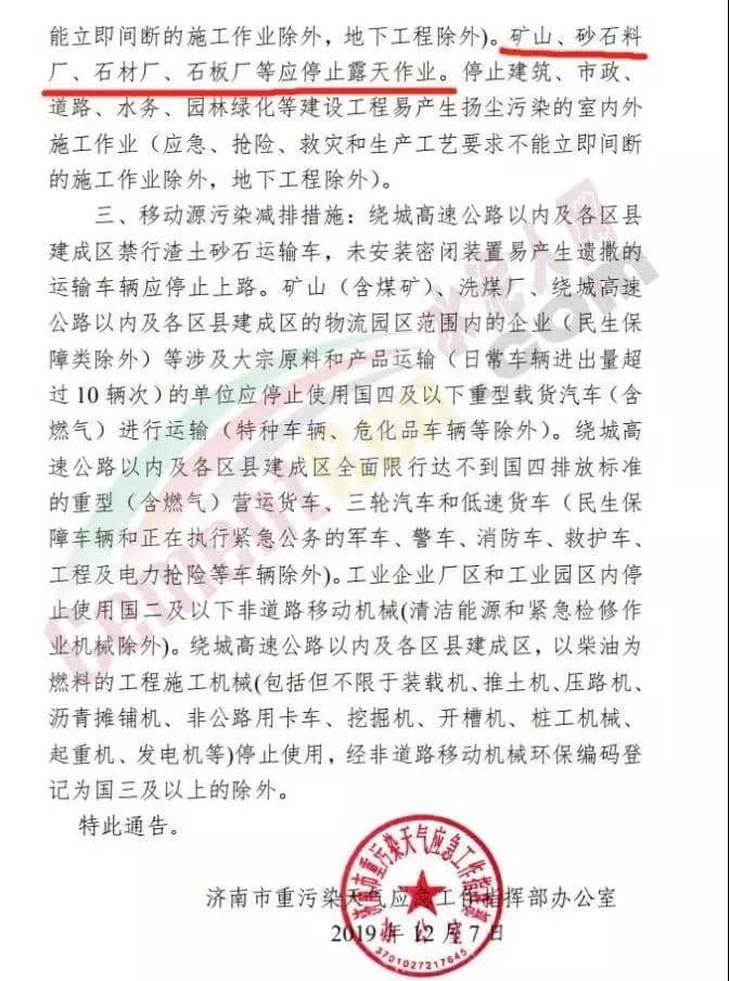 近日,山東省相繼也發(fā)布了重污染天氣預(yù)警通知,除山東之外,河南、山西、江蘇、湖南、陜西、京津冀等多區(qū)域也發(fā)布了污染天氣預(yù)警通知,啟動(dòng)相應(yīng)級(jí)別響應(yīng)。重污染天氣的來臨讓多區(qū)域進(jìn)入了緊張布局狀態(tài),在年末之際,正是生產(chǎn)旺季,全線迎來了煤炭停、鋼鐵停、水泥停、砂石停、混凝土停、工地停、物流停!
