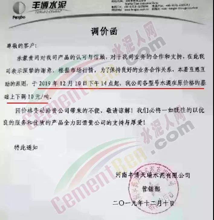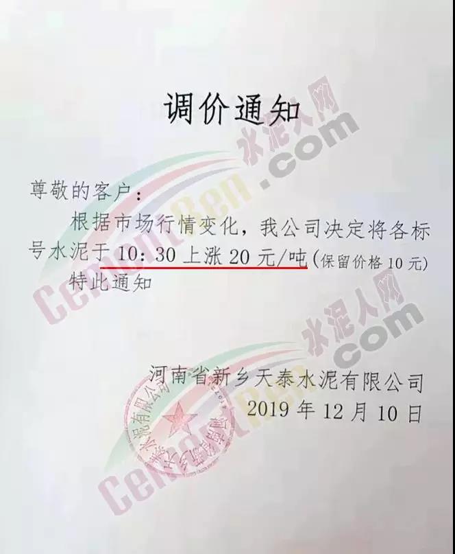 根據(jù)目前市場(chǎng)行情,經(jīng)公司研究決定,自2019年12月12日零時(shí)起我司發(fā)往各區(qū)域水泥,熟料,出廠(chǎng)單價(jià)在原有基礎(chǔ)上上調(diào)30元/噸。
