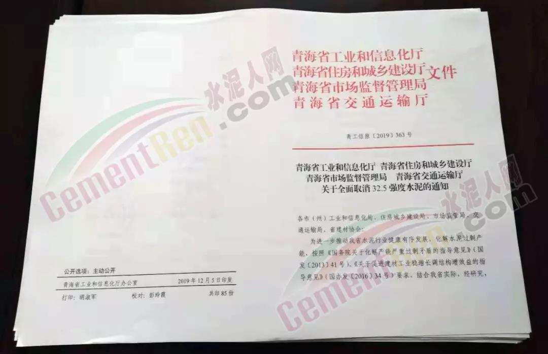 為進(jìn)一步推動(dòng)我省水泥行業(yè)健康有序發(fā)展,化解水泥過(guò)剩產(chǎn)能,按照《國(guó)務(wù)院關(guān)于化解產(chǎn)能?chē)?yán)重過(guò)剩矛盾的指導(dǎo)意見(jiàn)》(國(guó)發(fā)(2013]41號(hào))、《關(guān)于促進(jìn)建材工業(yè)穩(wěn)增長(zhǎng)調(diào)結(jié)構(gòu)增效益的指導(dǎo)意見(jiàn)》(國(guó)辦發(fā)[2016]34號(hào))要求,結(jié)合我省實(shí)際,經(jīng)研究,自2020年1月31日起,青海省內(nèi)嚴(yán)禁生產(chǎn)、銷(xiāo)售、運(yùn)輸、使用32.5強(qiáng)度水泥。