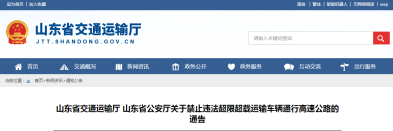 日前,山東省交通運輸隊發(fā)布了《關(guān)于禁止違法超限超載運輸車輛同行高速公路的通告》稱,為貫徹落實國務院決策部署,進一步加強高速公路違法超限超載治理工作,維護路產(chǎn)路權(quán)和人民生命財產(chǎn)安全,根據(jù)《中華人民共和國公路法》、《中華人民共和國道路交通安全法》等法律法規(guī)規(guī)定和國務院有關(guān)文件要求,決定2019年12月1日8時起,禁止違法超限超載運輸車輛通行。