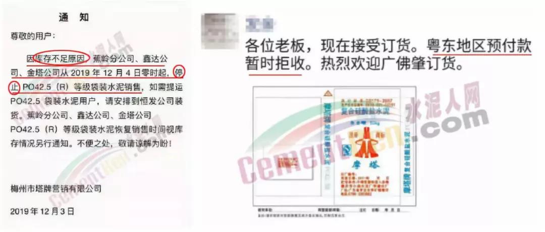 11月中旬,廣東某經(jīng)銷商發(fā)通知稱,粵東地區(qū)預(yù)付款暫時(shí)拒收。提前給錢也沒(méi)水泥賣了!