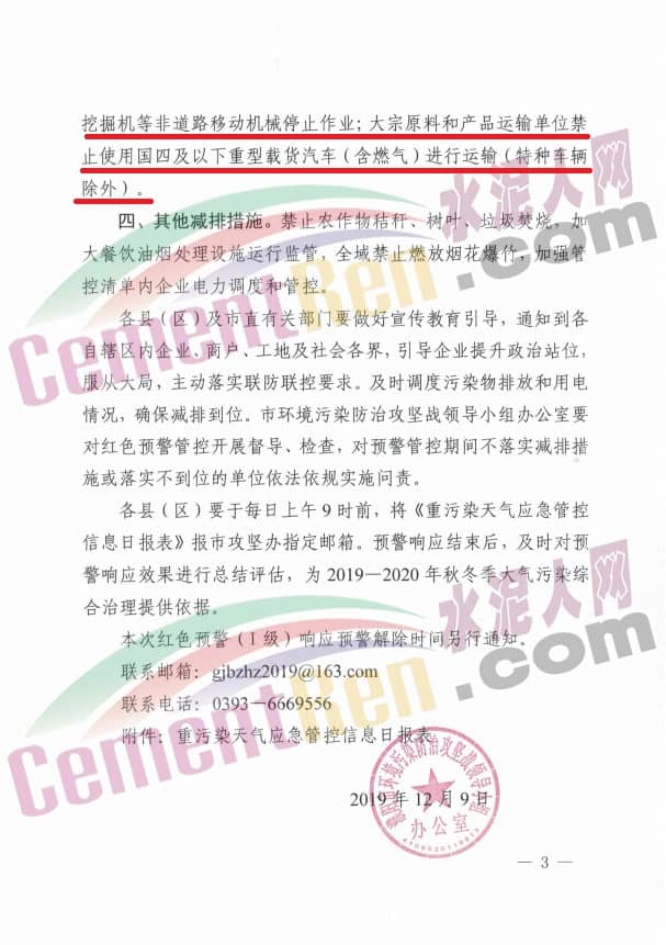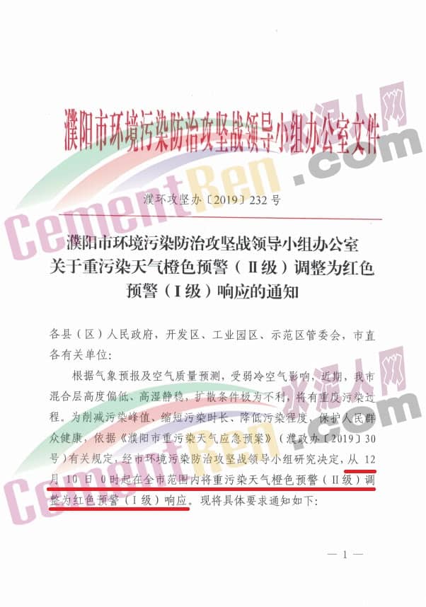 12月9日,河南省濮陽市環(huán)境污染防治攻堅(jiān)戰(zhàn)領(lǐng)導(dǎo)小組辦公室發(fā)布了《關(guān)于重污染天氣橙色預(yù)警(二級(jí))調(diào)整為紅色預(yù)警(一級(jí))響應(yīng)的通知》稱,根據(jù)氣象預(yù)報(bào)及空氣質(zhì)量預(yù)測(cè),受弱冷空氣影響,近期,濮陽市混合層高度偏低、高濕靜穩(wěn),擴(kuò)散條件極為不利,將有重度污染過程。為削減污染峰值、縮短污染時(shí)長、降低污染程度,保護(hù)人民群眾健康,依據(jù)《濮陽市重污染天氣應(yīng)急預(yù)案》(濮政辦[2019]30號(hào))有關(guān)規(guī)定,經(jīng)市環(huán)境污染防治攻堅(jiān)戰(zhàn)領(lǐng)導(dǎo)小組研究決定,自12月10日0時(shí)起在全市范圍內(nèi)將重污染天氣橙色預(yù)警(二級(jí))調(diào)整為紅色預(yù)警(一級(jí))響應(yīng),具體減排措施如下: