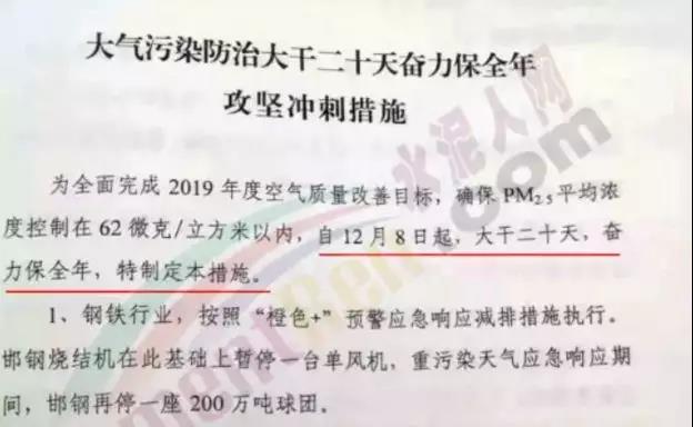 為了保證2019年的空氣質(zhì)量改善目標,河北省邯鄲市發(fā)布“大氣污染防治大干二十天奮力保全年攻堅沖擊措施”。決定大干20天,從12月8日,全面試行限產(chǎn)停產(chǎn)政策。