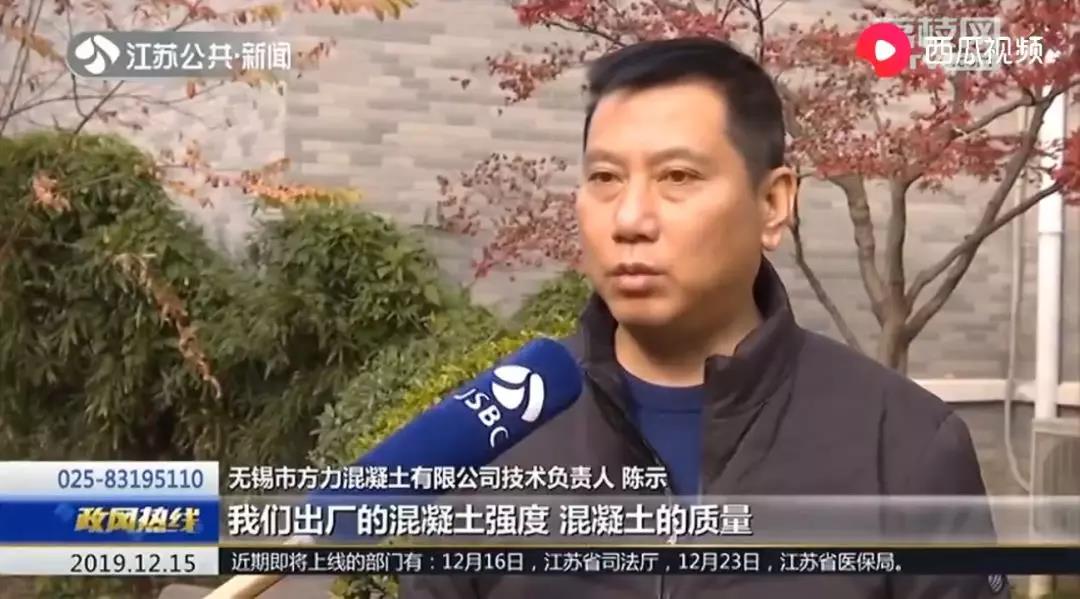 無錫市房力混凝土有限公司技術負責人陳示則表示,他們出廠的混凝土強度混凝土質(zhì)量肯定是沒有問題的。江蘇中博建設有限公司總經(jīng)理趙富民稱,廠家給出具了(承諾書)肯定沒問題,那事實上是沒問題嗎?