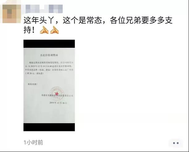 四川盛浩泰物資貿(mào)易有限公司調(diào)價通知稱,自12月18日零時起,對成都區(qū)域袋裝水泥出廠單價在原價格基礎(chǔ)上上調(diào)30元/噸。