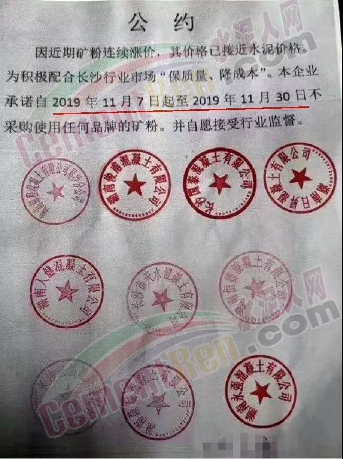此前,因礦粉漲價,湖南區(qū)域十家商砼企業(yè)訂立公約自因礦粉連續(xù)漲價,其價格已經(jīng)接近水泥價格,為積極配合長沙行業(yè) 市場“保質(zhì)量、降成本”。企業(yè)承諾一段時間內(nèi)不采購使用任何品牌的礦粉,并自愿 接受行業(yè)監(jiān)督。