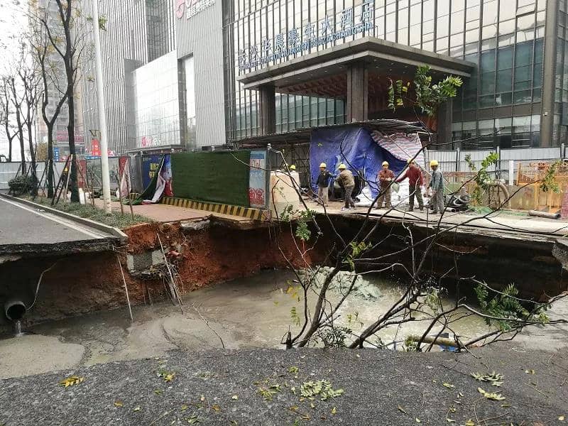 經(jīng)現(xiàn)場勘查,塌陷系該段道路下方土體沉降,引起自來水管接頭變形、發(fā)生爆裂,附加水壓荷載突增導(dǎo)致,因及時采取撤離人員、封閉道路、斷水?dāng)嚯姷葢?yīng)急措施,現(xiàn)場無任何人員傷亡和車輛損毀,對地鐵車站主體及區(qū)間未造成影響。