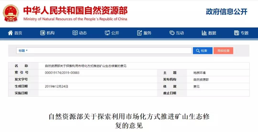 日前,自然資源部發(fā)布《關(guān)于探索利用市場(chǎng)化方式推進(jìn)礦山生態(tài)修復(fù)的意見(jiàn)》(以下簡(jiǎn)稱“《意見(jiàn)》”)稱,為解決礦山生態(tài)修復(fù)歷史欠賬多、現(xiàn)實(shí)矛盾多、投入不足等突出問(wèn)題,按照黨的十九大“構(gòu)建政府為主導(dǎo)、企業(yè)為主體、社會(huì)組織和公眾共同參與的環(huán)境治理體系”的要求,堅(jiān)持“誰(shuí)破壞、誰(shuí)治理”“誰(shuí)修復(fù)、誰(shuí)受益”原則,通過(guò)政策激勵(lì),吸引各方投入,推行市場(chǎng)化運(yùn)作、科學(xué)化治理的模式,加快推進(jìn)礦山生態(tài)修復(fù),制定本意見(jiàn)。