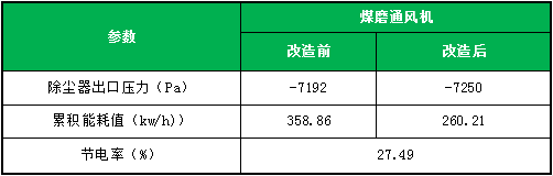 窯尾排風(fēng)機(jī)改造前后數(shù)據(jù)對(duì)比