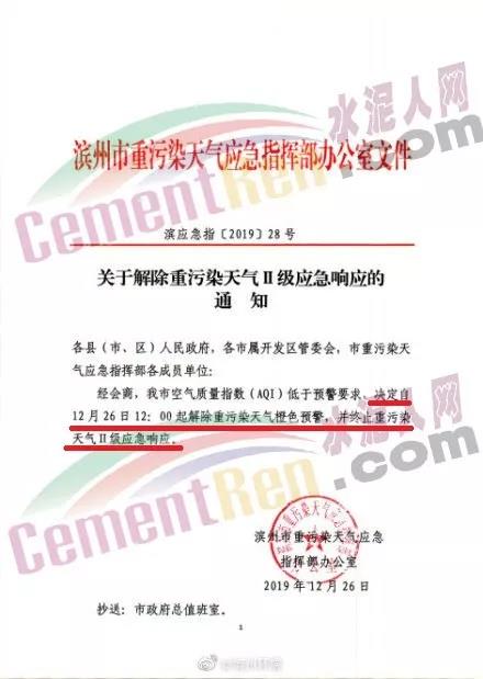 同期,山東省濱州市重污染天氣應(yīng)急指揮部辦公室也發(fā)布了《關(guān)于解除重污染天氣II級應(yīng)急響應(yīng)的通知》稱,定于12月26日12:00起解除重污染天氣橙色預(yù)警,并終止重污染天氣II級應(yīng)急響應(yīng)。
