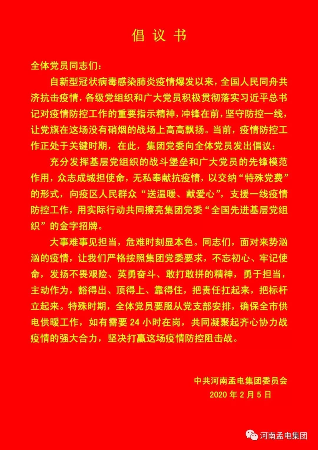 2月5日上午,孟電集團(tuán)黨委書記、董事長范海濤,將集團(tuán)208名黨員主動(dòng)交納的20萬元黨費(fèi)交到了市委組織部,助力疫情防控工作。