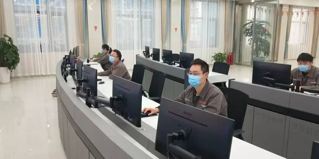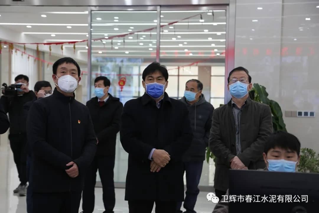 ▲新鄉(xiāng)市委書記張國偉一行在水泥公司中控室聽取裴春亮?xí)洀?fù)工復(fù)產(chǎn)情況匯報(bào)