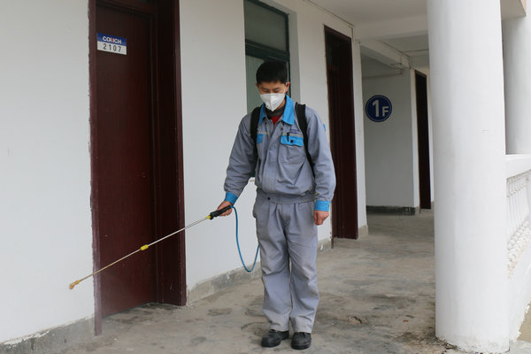 總經(jīng)辦后勤人員宿舍樓等公共區(qū)域消毒