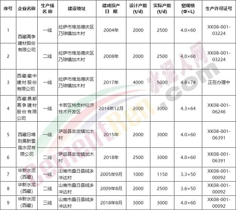 西藏自治區(qū)工信廳2019年未公布的生產(chǎn)清單顯示,截止上年未,西藏自治區(qū)共有9條熟料生產(chǎn)線,設(shè)計產(chǎn)能約615萬噸/年。