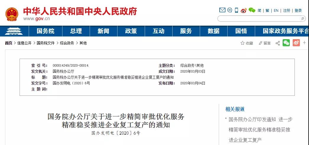 3月3日,國務(wù)院辦公廳緊急發(fā)文,《關(guān)于進(jìn)一步精簡審批優(yōu)化服務(wù)精準(zhǔn)穩(wěn)妥推進(jìn)企業(yè)復(fù)工復(fù)產(chǎn)的通知》,要求低風(fēng)險(xiǎn)地區(qū)不得采取審批、備案等方式延緩開工。對(duì)于中、高風(fēng)險(xiǎn)兩類地區(qū),各省(自治區(qū)、直轄市)政府要在滿足疫情防控要求的基礎(chǔ)上,按照最少、必需原則分別制定公布全省統(tǒng)一的復(fù)工復(fù)產(chǎn)條件,對(duì)確有必要的審批和證明事項(xiàng)實(shí)行清單管理,逐項(xiàng)列明辦理程序、材料和時(shí)限,清單之外一律不得實(shí)施審批或索要證明,防止出現(xiàn)層層加碼、互為前置審批、循環(huán)證明等現(xiàn)象。嚴(yán)禁向企業(yè)收取復(fù)工復(fù)產(chǎn)保證金等。對(duì)重點(diǎn)行業(yè)企業(yè)復(fù)工復(fù)產(chǎn)可設(shè)置審批綠色通道,加快提高復(fù)工復(fù)產(chǎn)率。