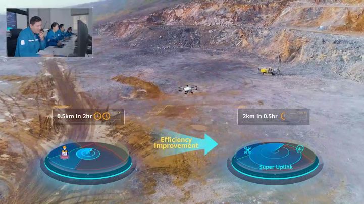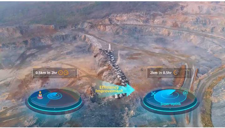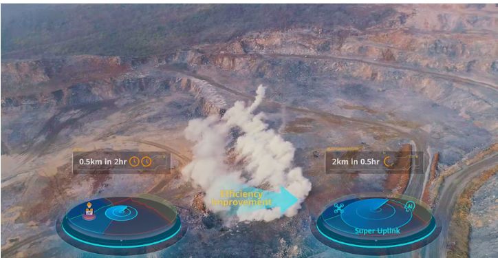 以礦區(qū)爆破預(yù)警應(yīng)用為例,“超級上行”可實(shí)現(xiàn)無人機(jī)4K高清視頻實(shí)時回傳,結(jié)合AI保障實(shí)時視頻清晰度和精準(zhǔn)識別,提升爆破警戒覆蓋范圍從原先500米擴(kuò)大到2公里,原有2小時人力檢查工作量,降低為半小時,生產(chǎn)效率大幅提升,并同步提高了爆破的安全性。