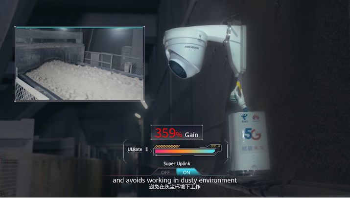 5G“超級上行”提供更高上行體驗(yàn),滿足海螺生產(chǎn)安防監(jiān)控系統(tǒng)在移動場景和弱覆蓋場景的正常作業(yè)。