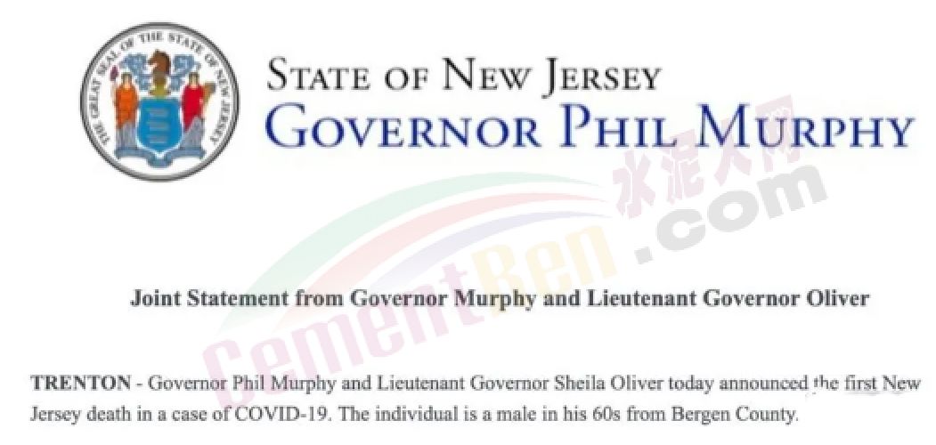 新澤西州長墨菲(Phil Murphy )中午宣布,首例肺炎死者名為博根郡(Bergen County),是一名69歲男子。