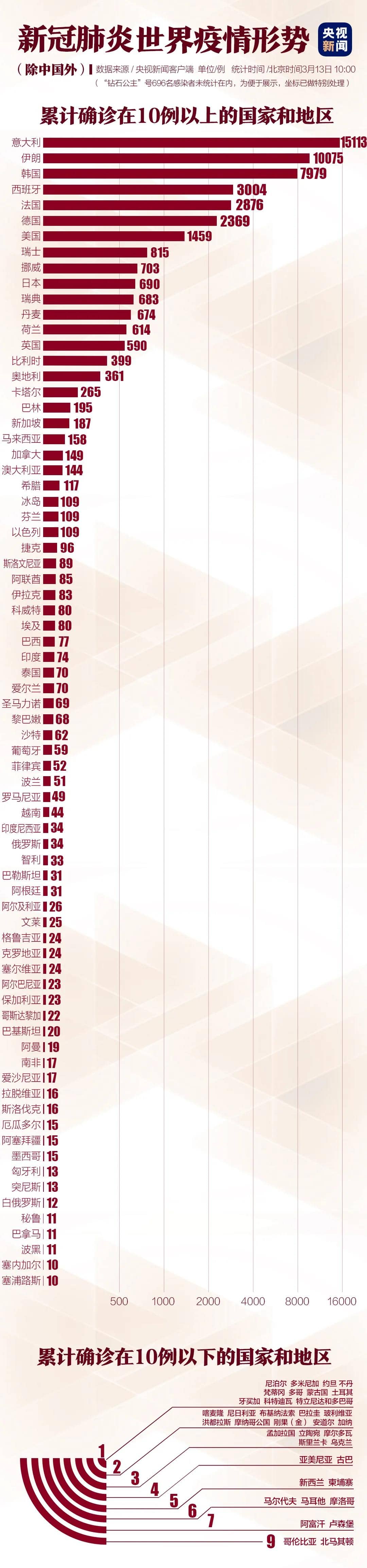 截至歐洲中部時間3月12日上午10時,中國境外共117個國家/領(lǐng)地/地區(qū)確診新冠肺炎44067例(新增6703例),死亡共計1440例(新增310例),新增4個國家/領(lǐng)地/地區(qū)(法屬波利尼西亞、土耳其、洪都拉斯、科特迪瓦)向世衛(wèi)組織上報新冠肺炎病例。