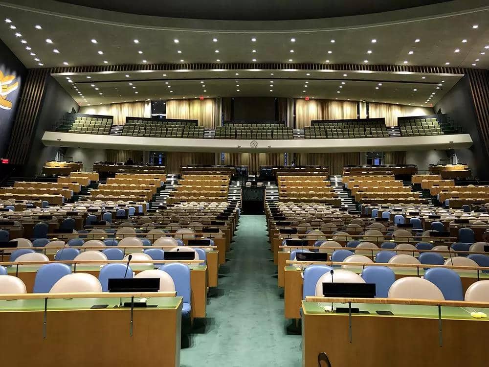 △圖為聯(lián)合國聯(lián)大會議廳