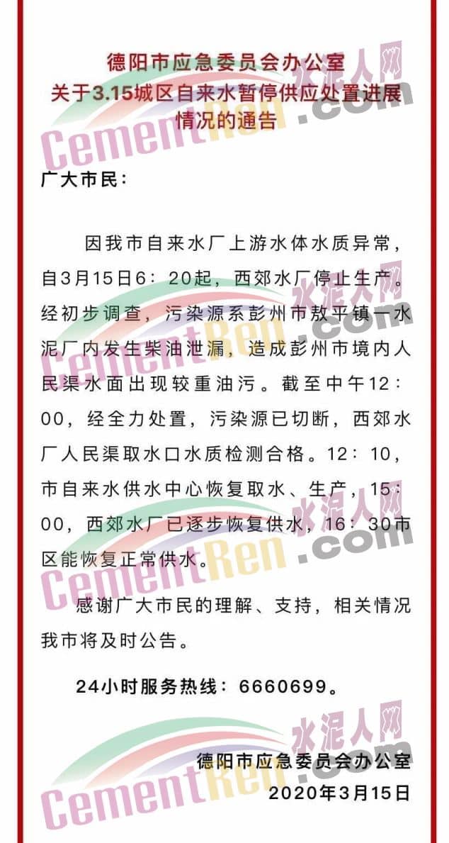 事件發(fā)生后,省委、省政府高度重視,省委書記彭清華,省委副書記、省長尹力作出明確批示,要求抓緊妥善處置,加強沿線監(jiān)測,控制對生態(tài)影響,特別是要確保群眾飲水安全。生態(tài)環(huán)境廳接到報告后,生態(tài)環(huán)境部西南督察局副局長柏倫章、四川省生態(tài)環(huán)境廳廳長王波、副廳長李銀昌分別在第一時間率專家趕赴現(xiàn)場指導處置工作,要求沿線加密監(jiān)測,確保用水安全。德陽市委、市政府主要領導在第一時間召集會議,對處置工作作出安排部署,市政府分管領導現(xiàn)場指揮處置。