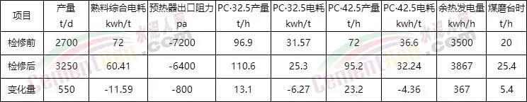 通過前后兩個(gè)月的調(diào)試和嚴(yán)格考核,熟料日產(chǎn)量穩(wěn)定在3100噸以上,熟料強(qiáng)度和易磨性也得到了明顯改善;根據(jù)中控參數(shù)富裕狀況分析,該線進(jìn)一步降阻后在煅燒純無煙煤狀態(tài)下具備3200t/d的能力。