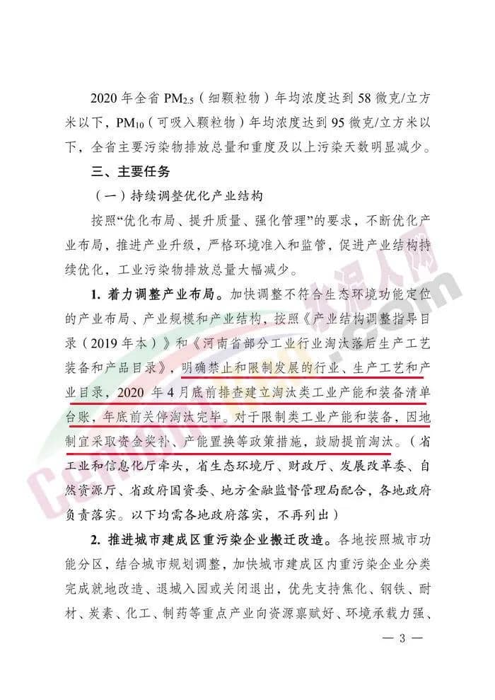1、2020年4月底前排查建立淘汰類工業(yè)產(chǎn)能和裝備清單臺賬,年底前關(guān)停淘汰完畢。對于限制類工業(yè)產(chǎn)能和裝備,因地制宜采取資金獎補(bǔ)、產(chǎn)能置換等政策措施,鼓勵提前淘汰。