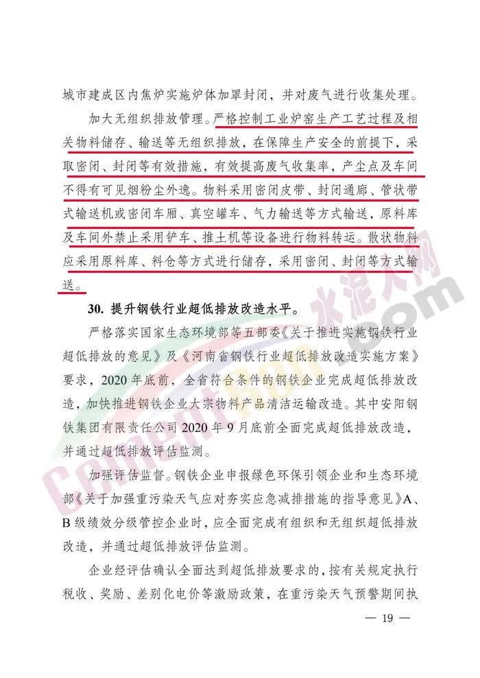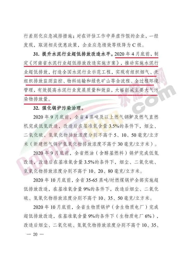 4.提升水泥行業(yè)超低排放改造水平。2020年4月底前,制定《河南省水泥行業(yè)超低排放改造實(shí)施方案》,推動實(shí)施水泥行業(yè)超低排放改造。