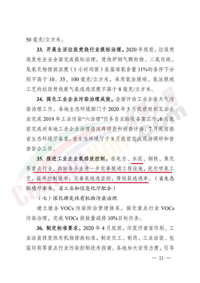 5.在水泥等重點(diǎn)行業(yè),鼓勵各企業(yè)進(jìn)一步完善脫硝工程設(shè)施,優(yōu)化噴氨工藝,提升控制效率,完善氨逃逸監(jiān)控,降低氨逃逸率。