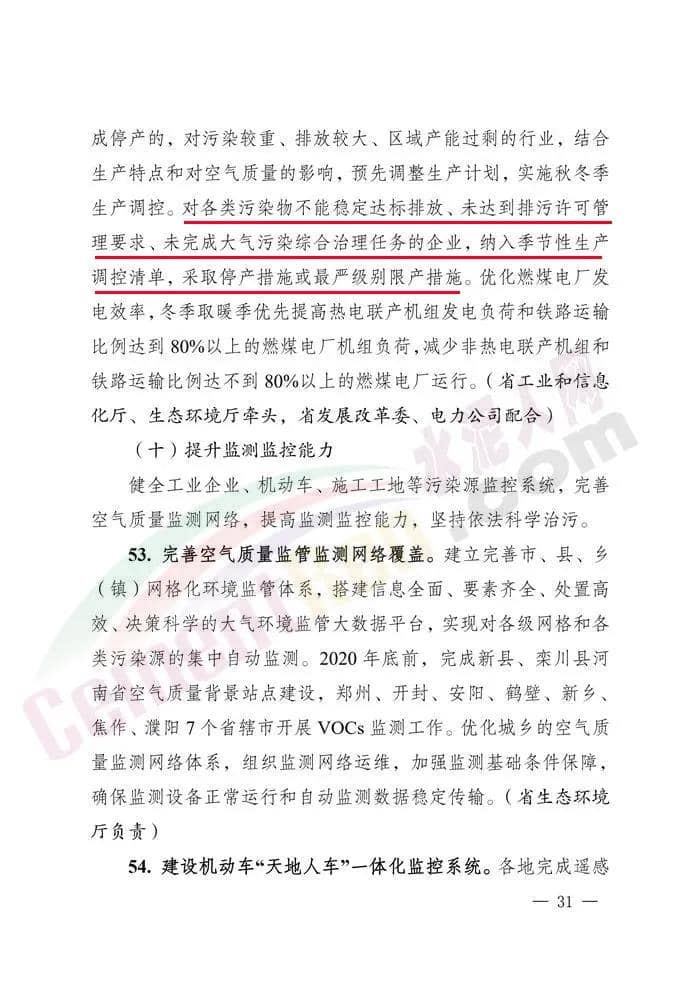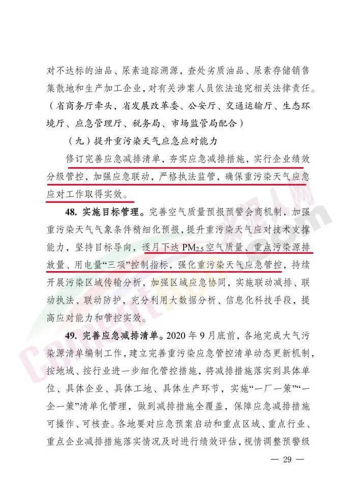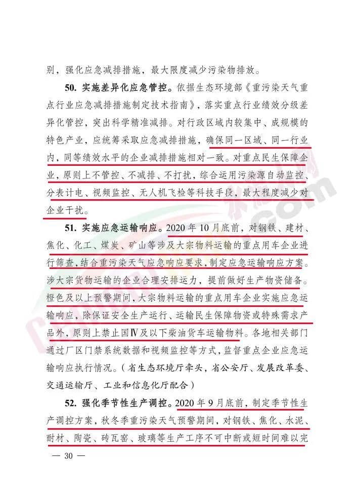 7.2020年9月底前,制定季節(jié)性生產(chǎn)調(diào)控方案,秋冬季重污染天氣預(yù)警期間,對水泥等生產(chǎn)工序不可中斷或短時間內(nèi)難以完成停產(chǎn)的,對污染較重、排放較大、區(qū)域產(chǎn)能過剩的行業(yè),結(jié)合生產(chǎn)特點(diǎn)和對空氣質(zhì)量的影響,預(yù)先調(diào)整生產(chǎn)計(jì)劃,實(shí)施秋冬季生產(chǎn)調(diào)控。