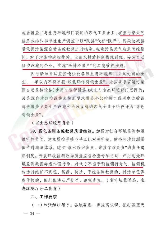 9.強(qiáng)化污染源在線監(jiān)控數(shù)據(jù)應(yīng)用,將污染源自動監(jiān)控數(shù)據(jù)應(yīng)用于全省重污染天氣應(yīng)急減排和季節(jié)性生產(chǎn)調(diào)控。在線監(jiān)控設(shè)施全覆蓋并與生態(tài)環(huán)境部門聯(lián)網(wǎng)的涉氣工業(yè)企業(yè),在重污染天氣應(yīng)急減排和季節(jié)性生產(chǎn)調(diào)控中以“限排”代替“限產(chǎn)”,污染物減排量依據(jù)污染源自動監(jiān)控數(shù)據(jù)進(jìn)行核定。在重污染天氣應(yīng)急管控期間,對于污染物達(dá)標(biāo)排放、無組織 排放控制措施到位、安裝自動監(jiān)控設(shè)施的企業(yè),實(shí)施“限排不限產(chǎn)”的 應(yīng)急管控措施。