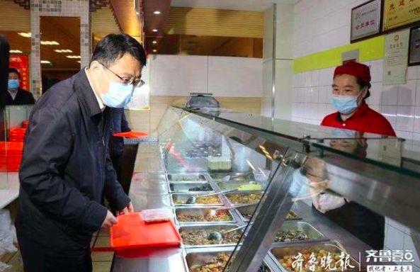 3月11日下午,山東省商河縣縣委書記翟軍在該縣超意興店就餐時,點了塊“把子肉”和一盒米飯吃。翟軍說,“我?guī)€頭,讓大家有信心在做好疫情防控的前提下,走進(jìn)餐廳吃堂食。”