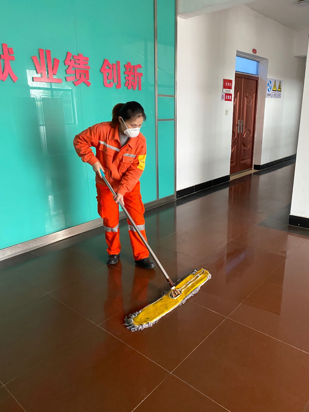 在第三方保潔人員自年初清退后,原計(jì)財(cái)部收款員徐郡臨危受命,在春節(jié)期間,接手華新湘鋼水泥公司保潔工作,她沉下心來(lái),拋下原來(lái)辦公室人員的“面子”,穿起工作服,帶上袖套和橡膠手套,承擔(dān)起了該公司辦公樓、宿舍樓等公共區(qū)域的清潔消毒工作,她每天第一個(gè)出現(xiàn)在辦公樓,提前對(duì)辦公樓、會(huì)議室、走廊、衛(wèi)生間、宿舍樓室內(nèi)外地面采取用浸潤(rùn)消毒液的拖把擦拭的方法,定時(shí)清潔消毒,并用浸過(guò)稀釋后消毒液的毛巾,仔細(xì)擦拭門(mén)把手、水龍頭、樓梯扶手等經(jīng)常性接觸的公共部位,確保不留死角和空白,抓緊、抓細(xì)、抓實(shí)各項(xiàng)防控措施,把每一項(xiàng)工作,每一個(gè)環(huán)節(jié)都做到位,面對(duì)疫情不退讓?zhuān)米约旱膶?shí)際行動(dòng)為廣大員工創(chuàng)造“靚潔美”的工作環(huán)境,展現(xiàn)華新湘鋼水泥公司女職工“愛(ài)廠如家”的風(fēng)采。