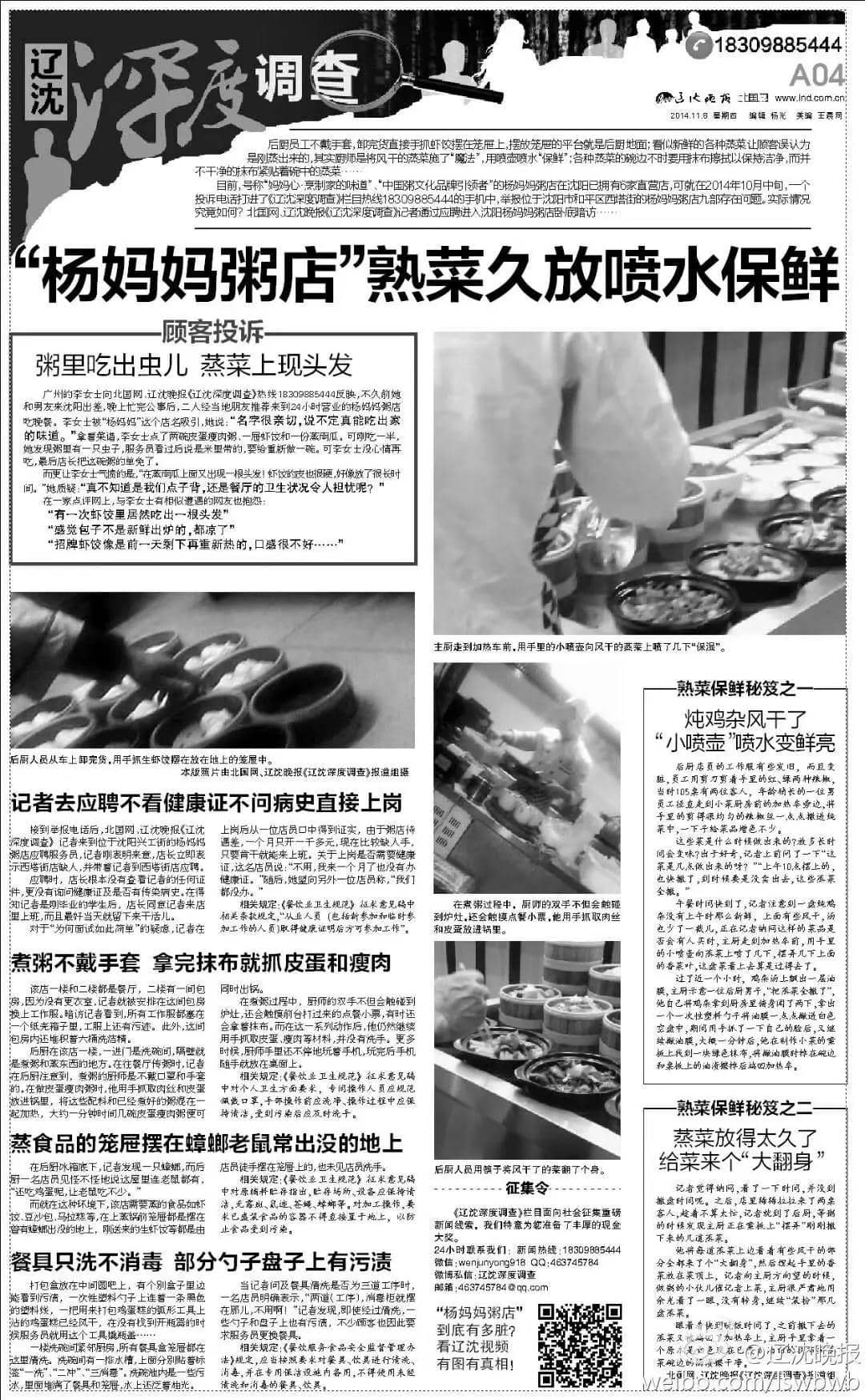 據(jù)遼沈深度調(diào)查報道:號稱“中國粥文化品牌引領(lǐng)者”的楊媽媽粥店在沈已有66家店。臥底卻發(fā)現(xiàn)讓人作嘔的一幕幕。后廚員工不戴手套,卸完貨直接抓蝦餃,籠屜直接放地上;蒸菜干了就澆點水保鮮;蒸菜碗邊用臟抹布擦拭保持潔凈,“沒變味就還能賣,外表不破損就行”…