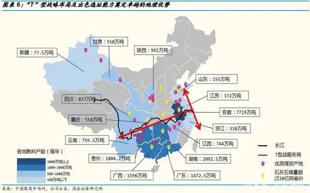 1997年,海螺水泥赴港上市融資,隨后沿長江布點實施“T”型發(fā)展戰(zhàn)略,T型的橫豎對應著長江和沿海,其含義是在擁有豐富石灰石資源的區(qū)域建立大規(guī)模生產(chǎn)的熟料基地,利用長江的低成本水運物流,到達長江沿岸和東部沿海擁有大容量水泥消費的城市群,并在當?shù)亟⒎勰フ净亍?br />