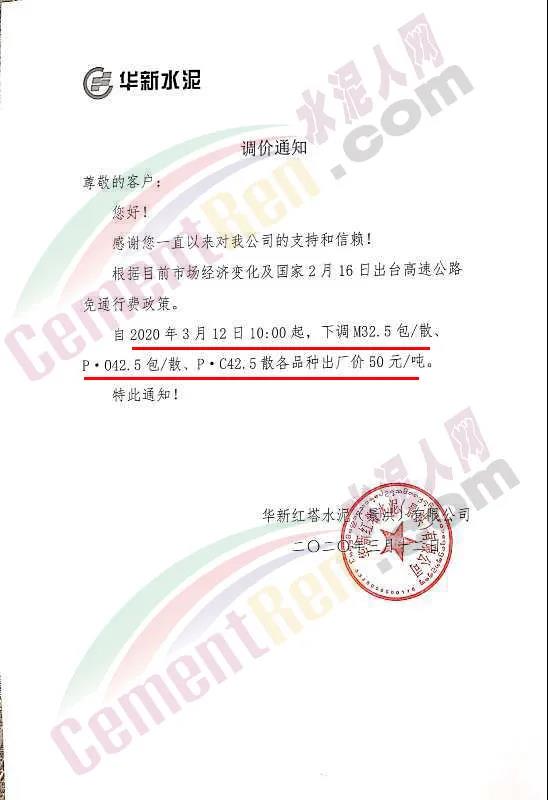 太陽石水泥通知27日上午10點(diǎn)起,水泥價(jià)格在原有基礎(chǔ)上下調(diào)20元/噸。