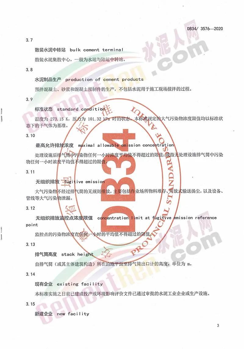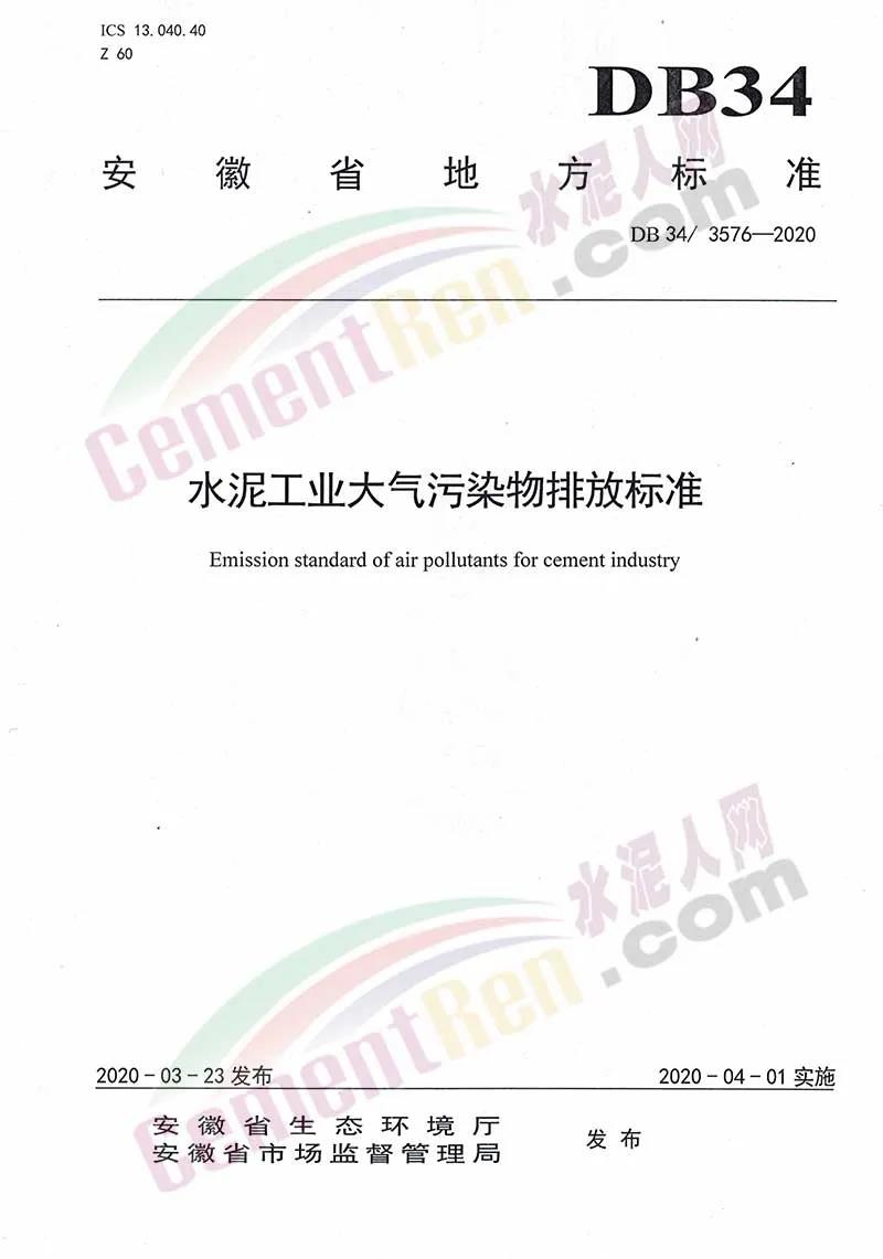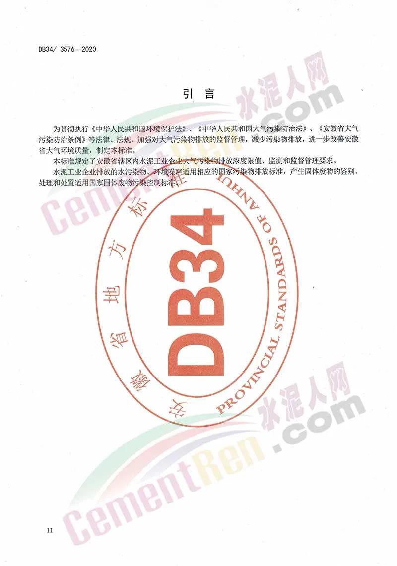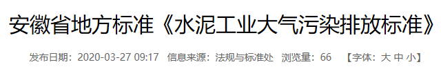 安徽省地方標準《水泥工業(yè)大氣污染排放標準》