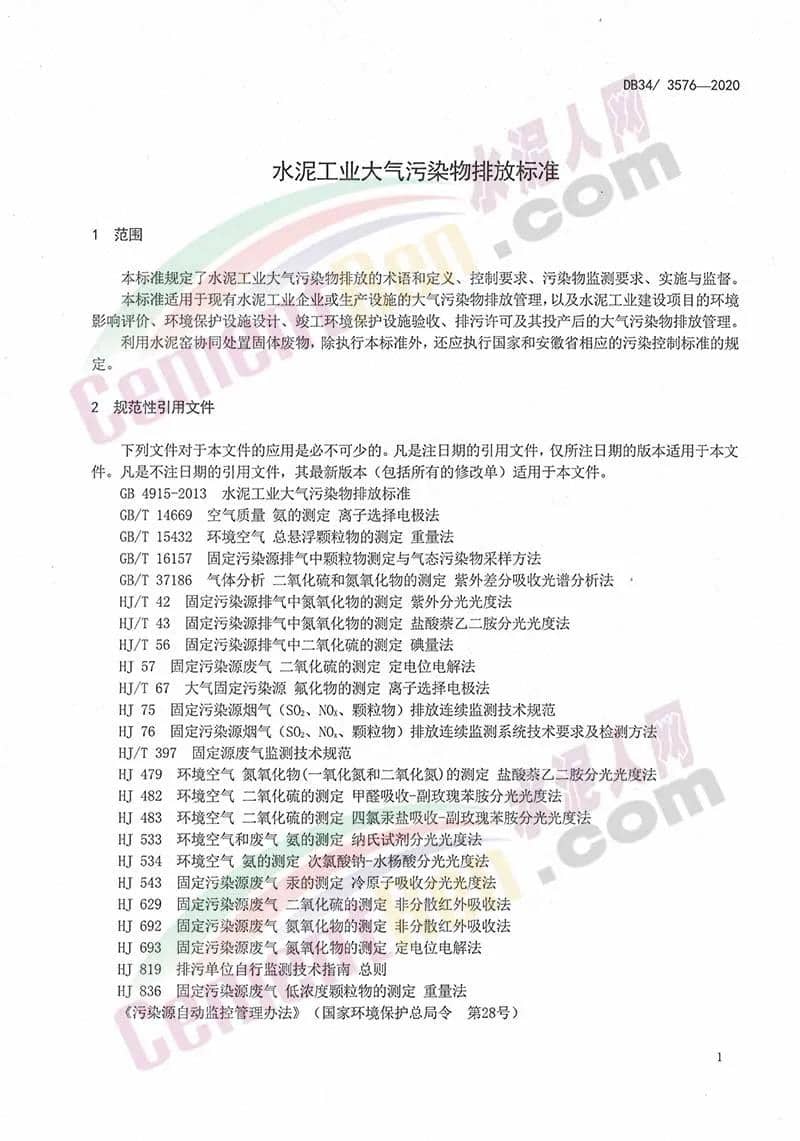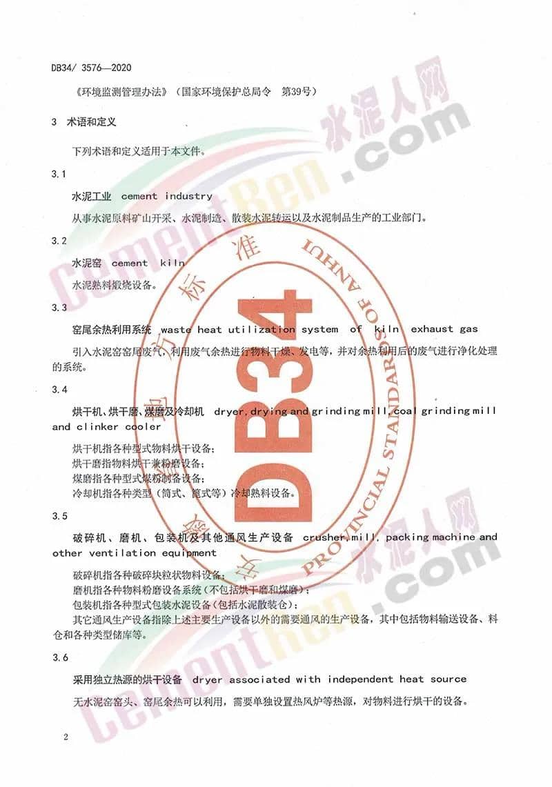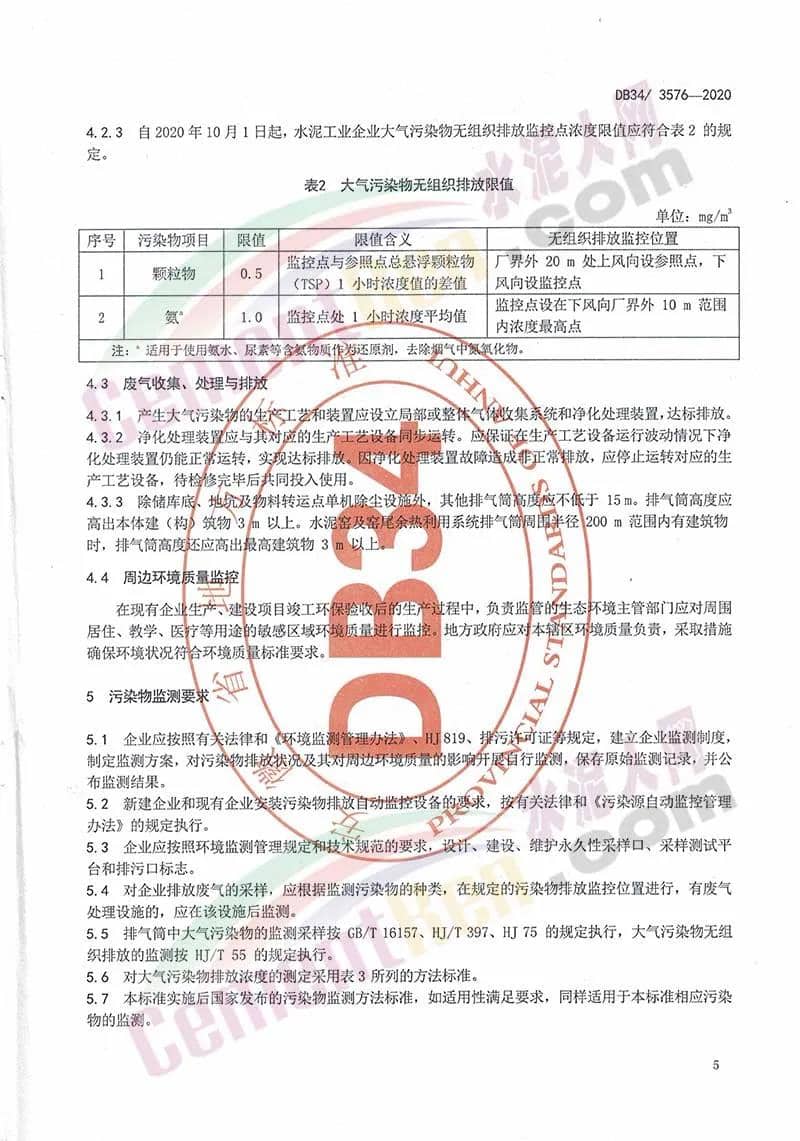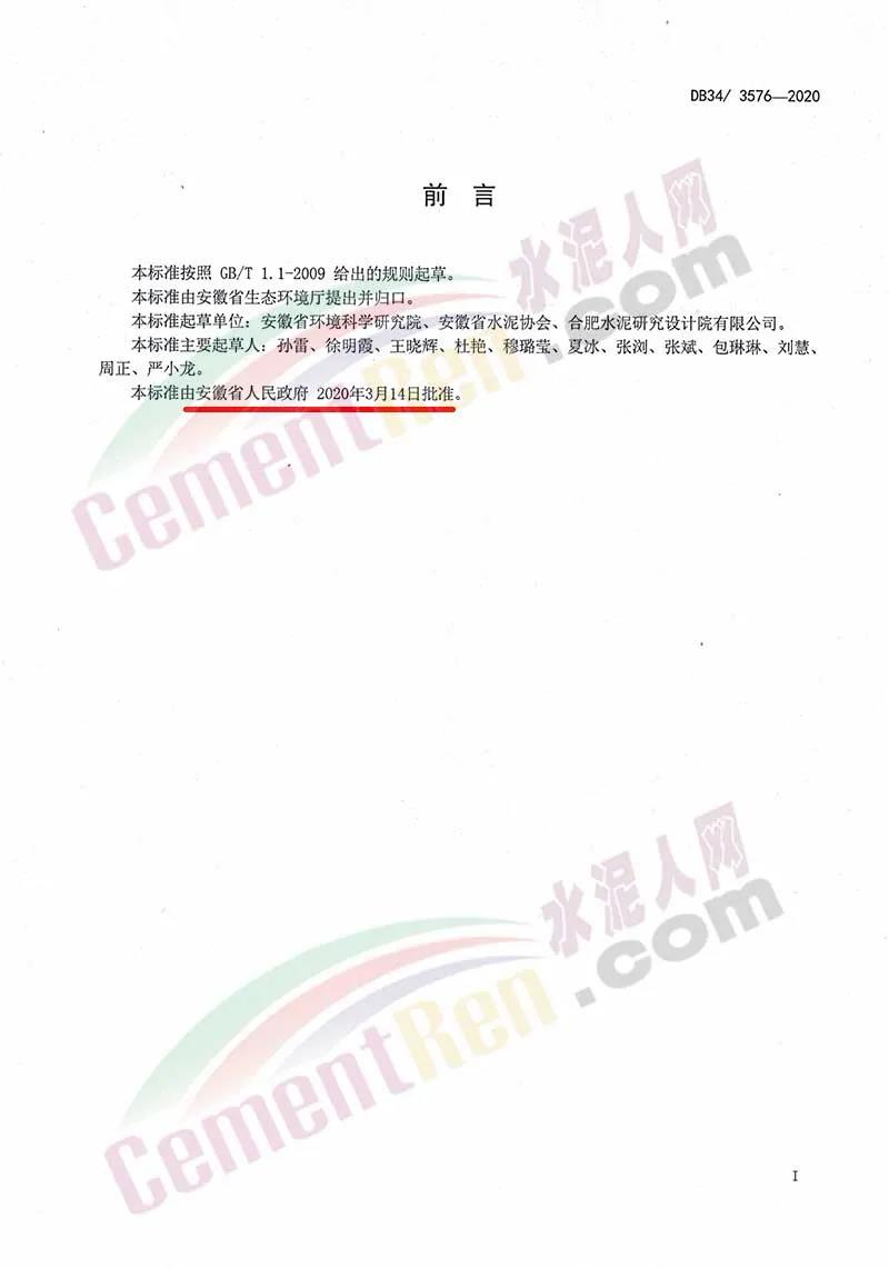 安徽省地方標準《水泥工業(yè)大氣污染排放標準》