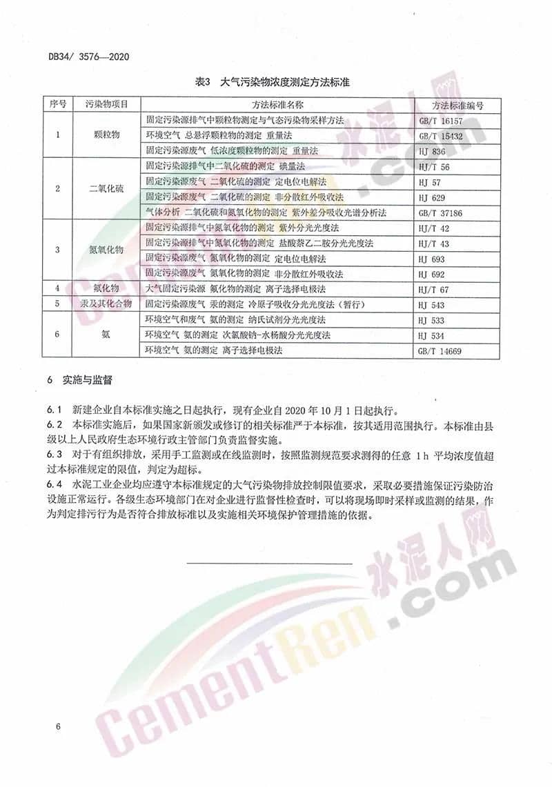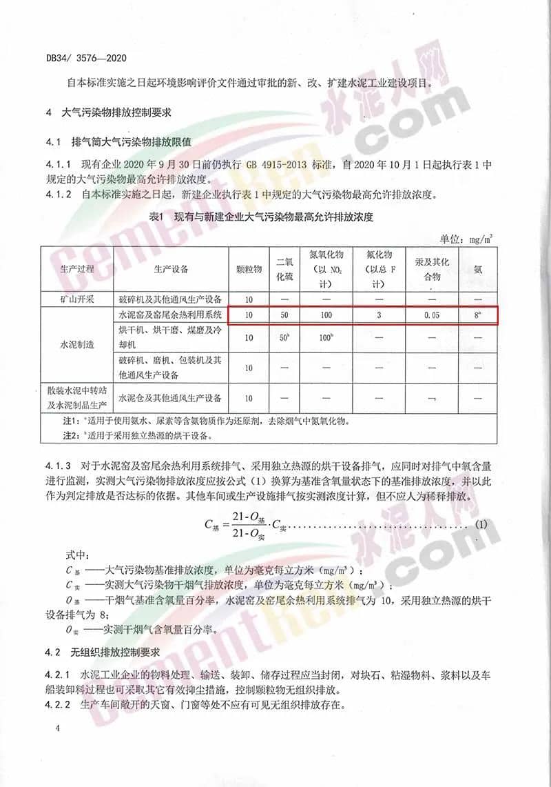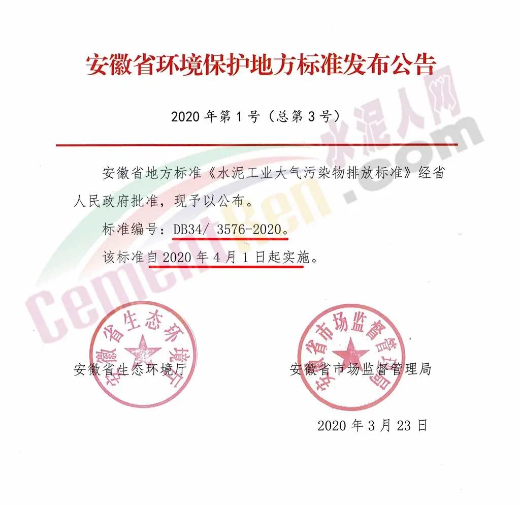 為助力打贏藍天保衛(wèi)戰(zhàn),加嚴重點行業(yè)污染物排放標準,安徽省生態(tài)環(huán)境廳牽頭制定《標準》。據(jù)介紹,《標準》適用于現(xiàn)有水泥工業(yè)企業(yè)或生產(chǎn)設(shè)施的大氣污染物排放管理,以及水泥工業(yè)建設(shè)項目的環(huán)境影響評價、環(huán)境保護設(shè)施設(shè)計、竣工環(huán)境保護設(shè)施驗收、排污許可及其投產(chǎn)后的大氣污染物排放管理?!稑藴省芬?guī)定,有組織排放的顆粒物、二氧化硫和氮氧化物分別為10、50、100mg/m3,為目前執(zhí)行的國標特別排放限值的50%、50%、31.2%(國標要求顆粒物、二氧化硫和氮氧化物分別為20、100、320mg/m3),氟化物、氨、汞及其化合物分別為3、8、0.05mg/m3,與國標要求一致。