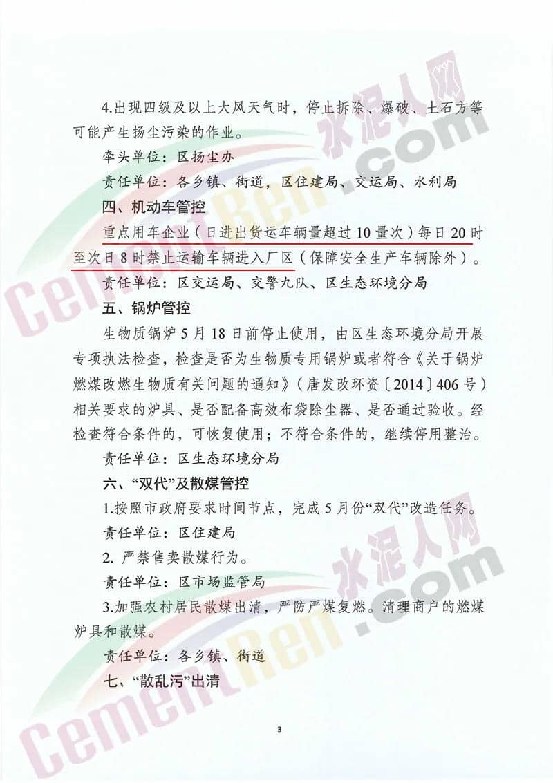 據(jù)了解,日前,河北省唐山市豐潤區(qū)發(fā)布通知要求重點(diǎn)工業(yè)企業(yè)自2020年5月18日8時(shí)至5月31日24時(shí)執(zhí)行加嚴(yán)管控措施。其中提到機(jī)動(dòng)車管控方面重點(diǎn)用車企業(yè)每日20時(shí)至次日8時(shí)禁止運(yùn)輸車輛進(jìn)入廠區(qū)。文件中針對工作要求特別強(qiáng)調(diào):