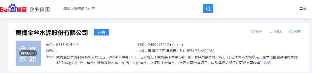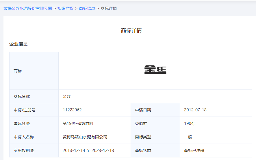 從上述包裝袋字樣可見(jiàn)“金絲牌PSA.32.5水泥”字樣,據(jù)查詢,“金絲牌”商標(biāo)為黃梅金絲水泥股份有限公司擁有。企業(yè)生產(chǎn)許可證編號(hào):XK08-001-04235 發(fā)證時(shí)間:2018-03-16,有效期至2020-04-01。生產(chǎn)地址位于:湖北省黃岡市黃梅縣下新鎮(zhèn)馬鞍山礦山路4#(縣水泥廠內(nèi))。企業(yè)為通用水泥42.5(粉磨站),擁有1條粉磨生產(chǎn)線,關(guān)鍵設(shè)備為Φ3.2×13m水泥磨機(jī)1臺(tái)。