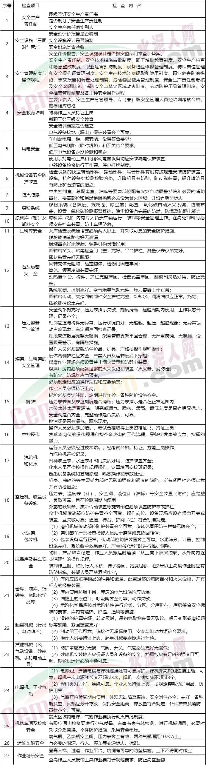 國(guó)務(wù)院令!安全大檢查來(lái)了!水泥廠查什么都在這里……