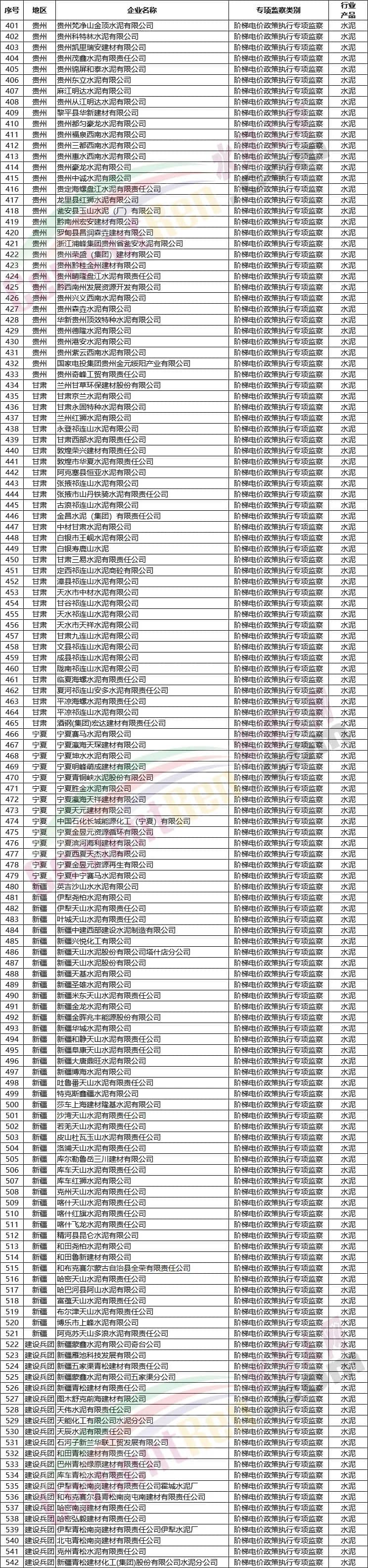 其中,包含階梯電價政策執(zhí)行專項監(jiān)察的水泥企業(yè)共542家,數(shù)據(jù)中心能效專項監(jiān)察144家。2019年違規(guī)企業(yè)整改落實情況專項監(jiān)察109家,其中包括2家水泥企業(yè),分別為新疆天盾特種水泥有限公司和英德市寶江水泥材料有限公司。重點高耗能行業(yè)能耗專項監(jiān)察化工集團水泥企業(yè)1家即內(nèi)蒙古君正化工有限責任公司,其行業(yè)(產(chǎn)品)除水泥外還包括聚氯乙烯樹脂。