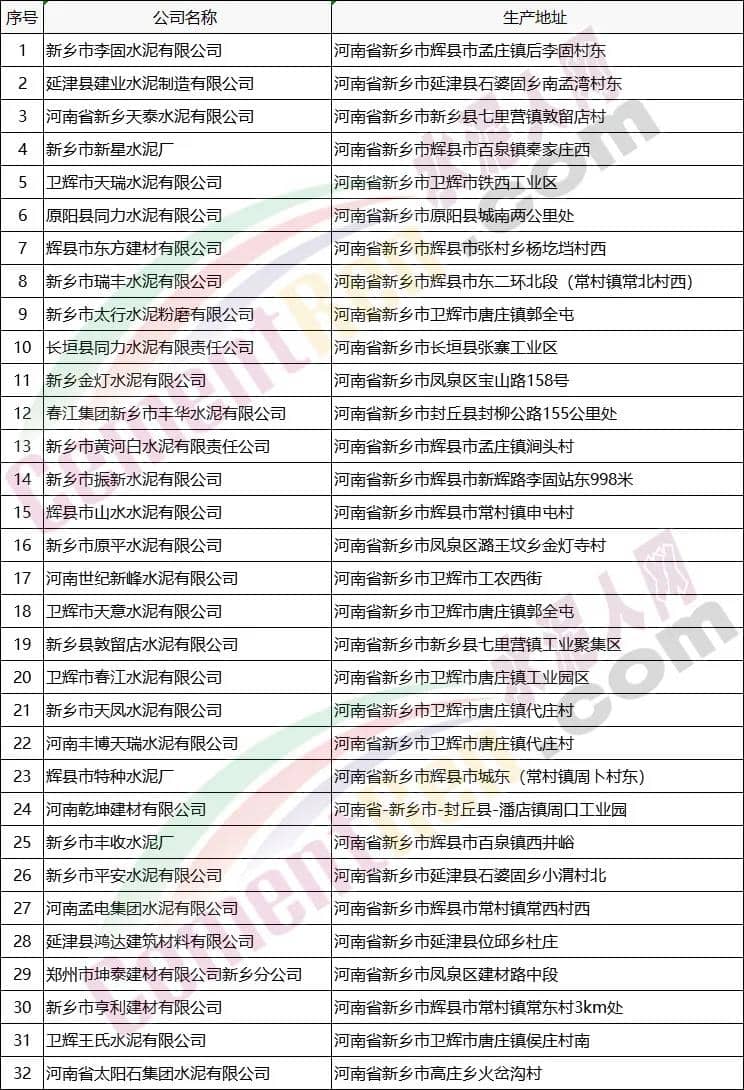新鄉(xiāng)水泥企業(yè)名單