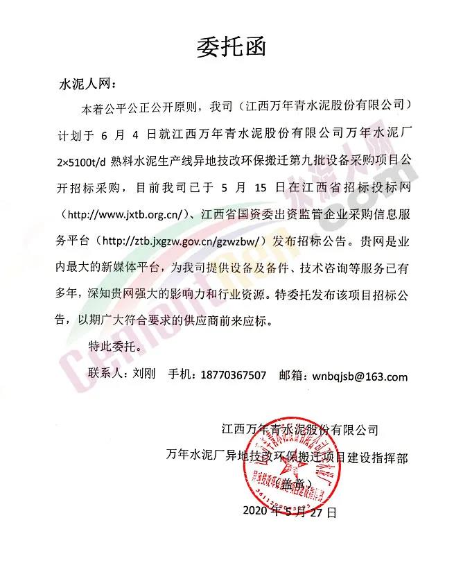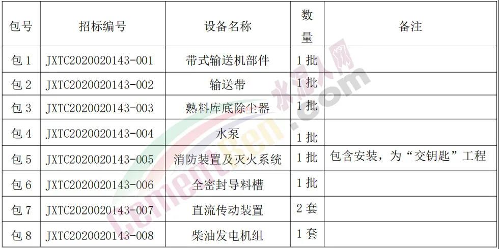 (招標(biāo)編號(hào):JXTC2020020143-001~008)江西萬(wàn)年青水泥股份有限公司萬(wàn)年水泥廠2×5100t/d熟料水泥生產(chǎn)線異地技改環(huán)保搬遷第九批設(shè)備采購(gòu)項(xiàng)目進(jìn)行國(guó)內(nèi)公開(kāi)招標(biāo)。有關(guān)事項(xiàng)公告如下:
