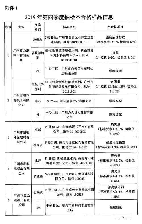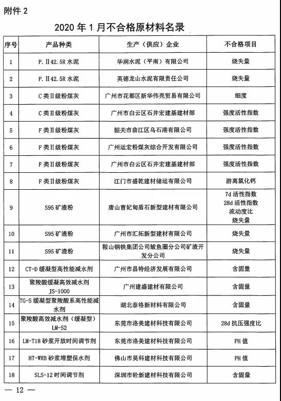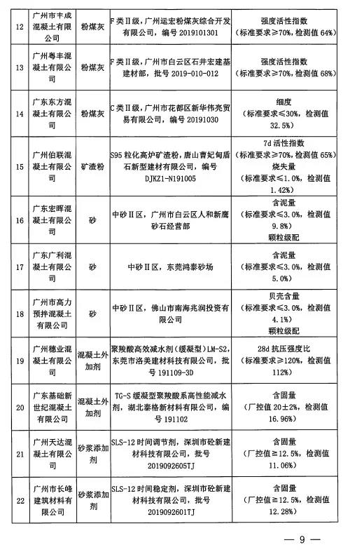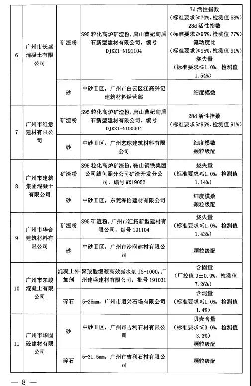 對上上述監(jiān)督抽檢不合格的企業(yè)列為重點(diǎn)檢查對象,廣州市散辦將加大監(jiān)管力度,重點(diǎn)核查上述企業(yè)質(zhì)量管理情況,并不定期開展質(zhì)量抽檢 。將本次抽檢的不合格原材料列入不合格原材料名錄,建議全市預(yù)拌混凝土企業(yè),預(yù)拌砂漿企業(yè)謹(jǐn)慎選用名錄內(nèi)的原材料。