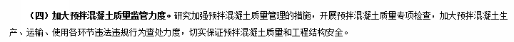 4月8日,住建部官網(wǎng)發(fā)布關(guān)于印發(fā)《住房和城鄉(xiāng)建設(shè)部工程質(zhì)量安全監(jiān)管司2020年工作要點(diǎn)》的通知(司局函質(zhì)〔2020〕10號) 稱住房和城鄉(xiāng)建設(shè)部工程質(zhì)量安全監(jiān)管司2020年工作要點(diǎn)包括開展預(yù)拌混凝土質(zhì)量專項(xiàng)檢查,加大預(yù)拌混凝土生產(chǎn)、運(yùn)輸、使用各環(huán)節(jié)違法違規(guī)行為查處力度,切實(shí)保證預(yù)拌混凝土質(zhì)量和工程結(jié)構(gòu)安全。