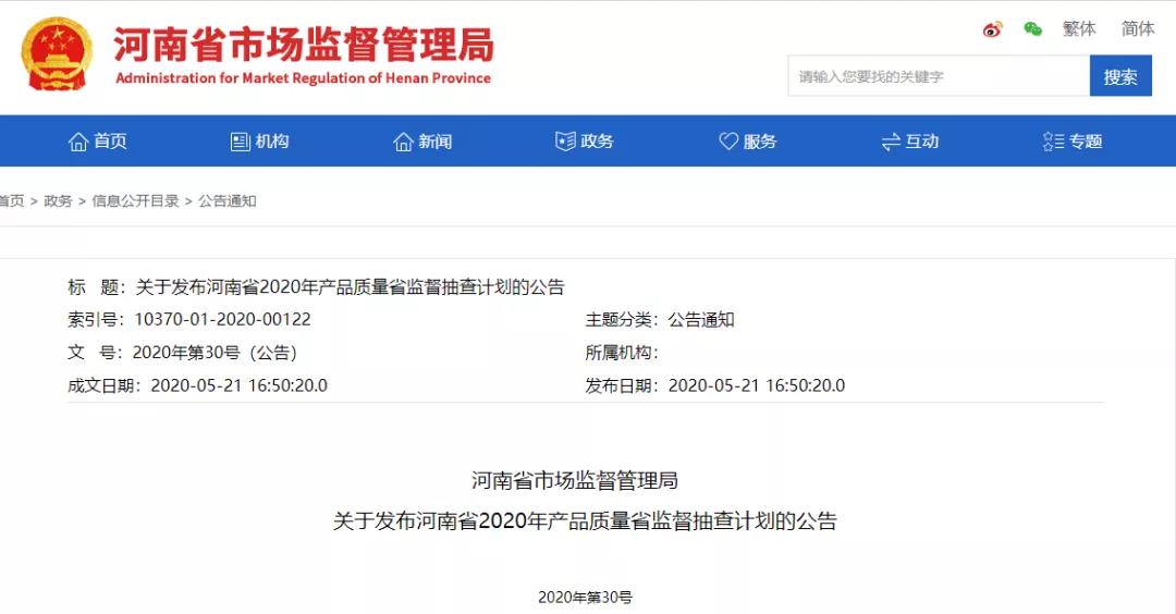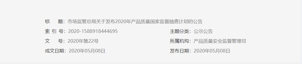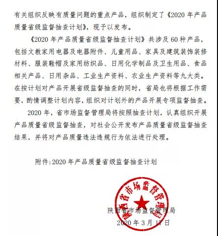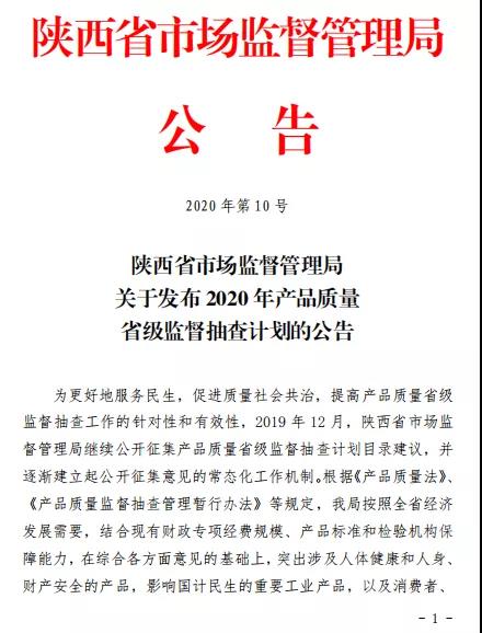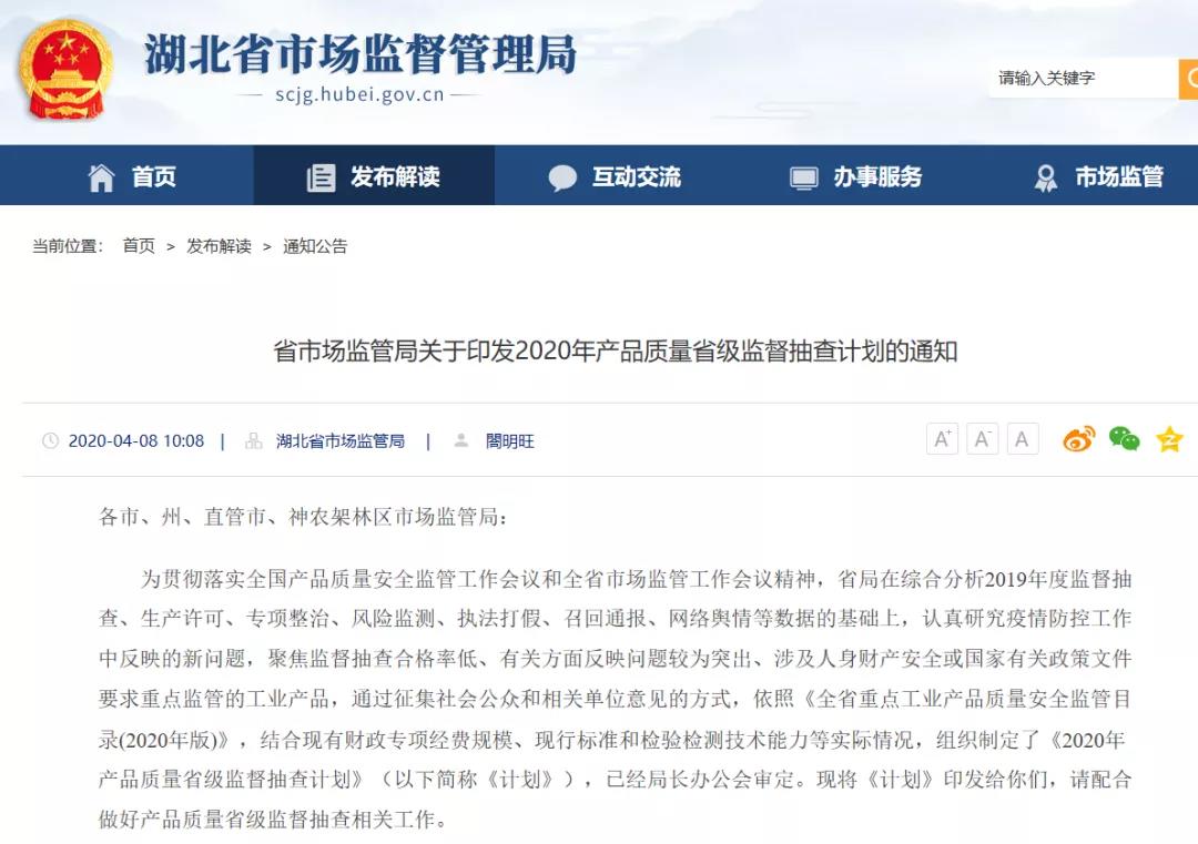 與此同時(shí),湖北、陜西、河南等多個(gè)省市地區(qū)陸續(xù)下發(fā)了2020年產(chǎn)品質(zhì)量國家監(jiān)督抽查計(jì)劃及細(xì)則。