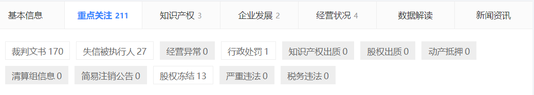百度企業(yè)信用數(shù)據(jù)顯示這家企業(yè)涉及多起“官司”,失信被執(zhí)行27人,收到裁判文書170份(僅2019年就涉及30份,2020年1份),股東凍結(jié)13起。且存在1次行政處罰。